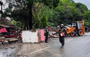 മണിപ്പൂരില് ഇന്നലെയുണ്ടായ സംഘര്ഷത്തില് പൊലീസ് ഉദ്യോഗസ്ഥന് അടക്കം അഞ്ചുപേര് കൊല്ലപ്പെട്ടു. 12 പേര്ക്ക് പരിക്കേറ്റു. കലാപബാധിതമായ മണിപ്പൂരില് കേന്ദ്ര ആഭ്യന്തരമന്ത്രി