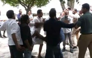 കോണ്ഗ്രസ് പ്രവര്ത്തകര് കൊച്ചി കോര്പറേഷന് മുന്നില് നടത്തിയ സമരത്തിനിടെ കോര്പറേഷന് ജീവനക്കാര്ക്ക് മര്ദ്ദനം. കോര്പറേഷന് സെക്രട്ടറിയടക്കം നാല് ജീവനക്കാരെ കോണ്ഗ്രസ്