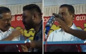 മൈക്ക് ശരിയാക്കാന് വന്ന യുവാവിനെ ശകാരിച്ച് എം വി ഗോവിന്ദന്