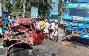 തൃശൂര്: ബസ്സും കാറും കുട്ടിയിടിച്ച് ഒരു കുടുംബത്തിലെ നാലു പേര് മരിച്ചു. തൃശൂര് എറവ് സ്കൂളിനു സമീപമാണ് അപകടമുണ്ടായത്. കാര്