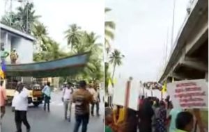 തിരുവനന്തപുരം: വിഴിഞ്ഞം തുറമുഖ നിര്മ്മാണത്തിനെതിരെ സമരം കടുപ്പിച്ച് മത്സ്യത്തൊഴിലാളികള്. ലത്തീന് അതിരൂപതയുടെ നേതൃത്വത്തില് വിവിധ കേന്ദ്രങ്ങളില് റോഡ് ഉപരോധിക്കുകയാണ്. വള്ളങ്ങള്