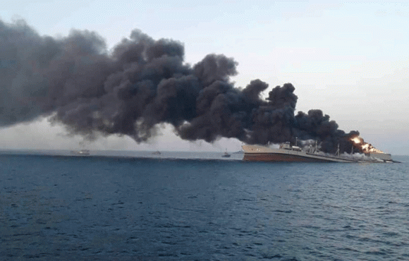 കപ്പലിന് സമീപം ആളില്ലാ ആകാശ വാഹനം പൊട്ടിത്തെറിച്ചതിനെത്തുടർന്ന് മാൾട്ടയുടെ പതാക ഘടിപ്പിച്ച, ഫ്രഞ്ച് പ്രവർത്തിക്കുന്ന കണ്ടെയ്നർ