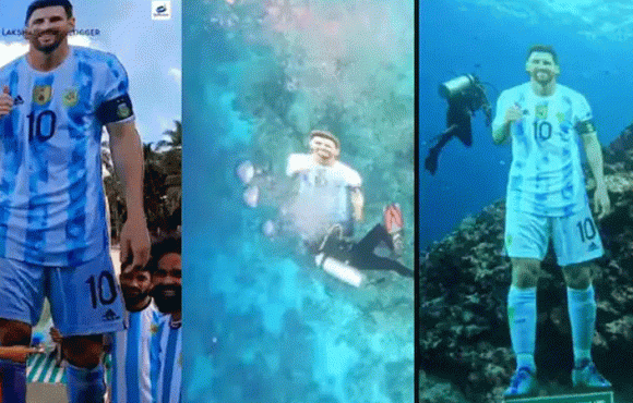 മെസിയുടെ വലിപ്പമേറിയ കട്ടൗട്ട് കടലിന്റെ അടിയിൽ സ്ഥാപിച്ച് സ്നേഹം പ്രകടിപ്പിക്കുകയാണ് ലക്ഷദ്വീപിലെ അര്ജന്റീന ഫാന്സ്