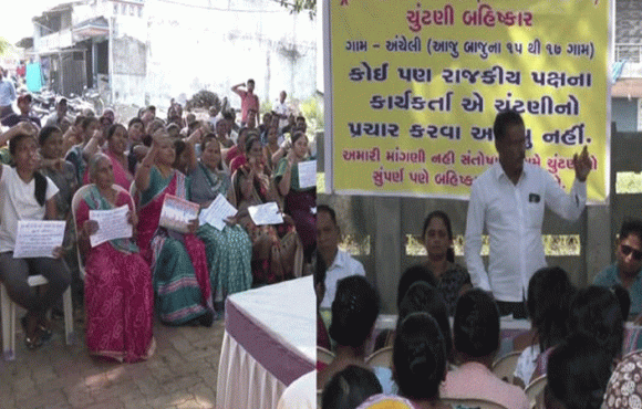 വോട്ടും തേടി ബിജെപി ഉൾപ്പെടെ ഒരു പാർട്ടിയും ഗ്രാമങ്ങളില് പ്രവേശിക്കരുതെന്ന് ബാനറുകളും പോസ്റ്ററുകളും ജനങ്ങള് പലയിടത്തായി പതിപ്പിച്ചിട്ടുണ്ട്.
