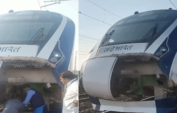 മുംബൈ സെൻട്രലിൽ നിന്ന് ഗുജറാത്തിലെ ഗാന്ധിനഗറിലേക്ക് പുറപ്പെട്ട വന്ദേ ഭാരത് എക്സ്പ്രസ് ട്രെയിൻ കാളയുമായി കൂട്ടിയിടിക്കുകയായിരുന്നു.