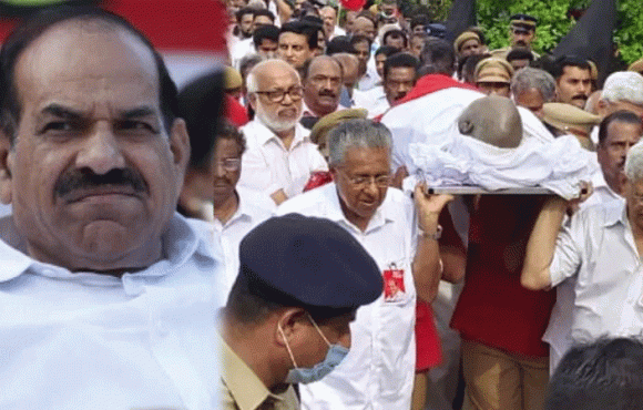 മുഖ്യമന്ത്രി പിണറായി വിജയനും സിപിഎം ദേശീയ ജനറല് സെക്രട്ടറി സീതാറാം യെച്ചൂരിയുമാണ് കോടിയേരിയുടെ മൃതദേഹവും വഹിച്ച് കൊണ്ട് ഇരുവശങ്ങളിലുമുണ്ടായിരുന്നത്.
