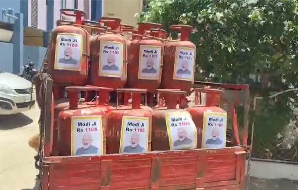നിങ്ങൾക്ക് മോദി ജിയുടെ ചിത്രങ്ങൾ വേണമായിരുന്നു, ഇതാ നിർമല സീതാരാമൻ ജി എൽപിജി സിലിണ്ടറുകളിലെ മോദിയുടെ പോസ്റ്ററുകളുടെ വീഡിയോ