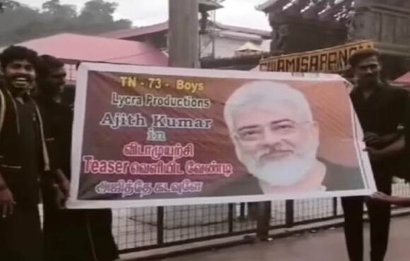 ‘അജിത് കടവുളേ’ എന്ന മുദ്രാവാക്യം വിളിച്ച് ശബരിമല ക്ഷേത്ര സന്നിധിയിൽ ആരാധകർ ബാനർ ഉയർത്തി. ‘വിടാമുയർച്ചി’ എന്ന ചിത്രത്തിന്റെ ടീസറാണ്