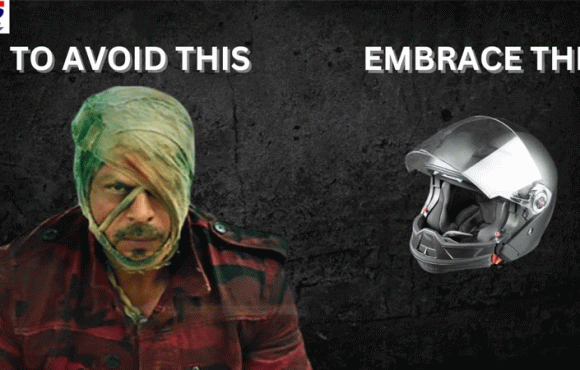 റോഡിൽ സഞ്ചരിക്കുമ്പോൾ ഇരുചക്രവാഹന യാത്രക്കാര് ഹെല്മെറ്റ് ധരിക്കേണ്ടതിന്റെ ആവശ്യകത ഊന്നിപ്പറയുന്ന പരസ്യമാണ് ഇത്.