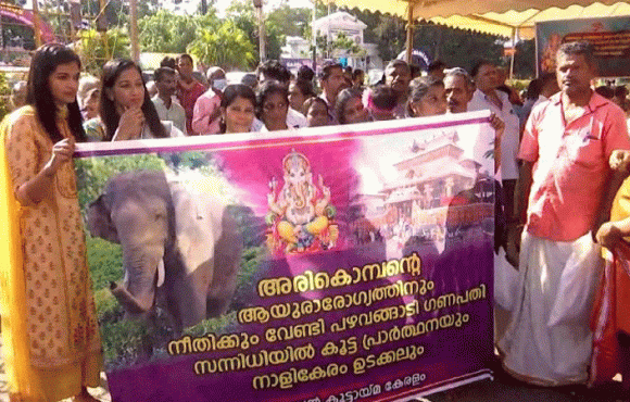 അരിക്കൊമ്പൻ കൂട്ടായ്മയുടെ നേതൃത്വത്തിൽ ‘‘അരിക്കൊമ്പന്റെ ആയുരാരോഗ്യത്തിനും നീതിക്കുമായി പഴവങ്ങാടി ഗണപതി സന്നിധിയിൽ