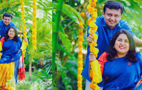 റിയാസും വീണയും നീല തീമിലുള്ള പുതുവസ്ത്രമാണ് അണിഞ്ഞിരിക്കുന്നത്. മുണ്ടും ഷർട്ടുമാണു റിയാസിന്റെ വേഷം. നീലയും മഞ്ഞയും ചുവപ്പും നിറങ്ങൾ