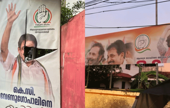 അമ്പലപ്പുഴയിൽ കെ സി വേണുഗോപാലിന്റെ കൂറ്റൻ ഫ്ലെക്സ് ബോര്ഡ് തീയിട്ട് നശിപ്പിച്ചു