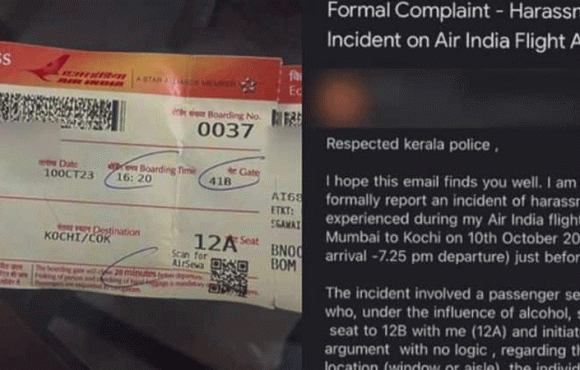 യാത്രയിൽ മദ്യലഹരിയിൽ ആയിരുന്ന സഹയാത്രികൻ അടുത്ത് വന്നിരുന്ന് അപമര്യാദയായി പെരുമാറിയെന്നാണ് പരാതിയിൽ പറയുന്നത്. യാത്രക്കിടെ