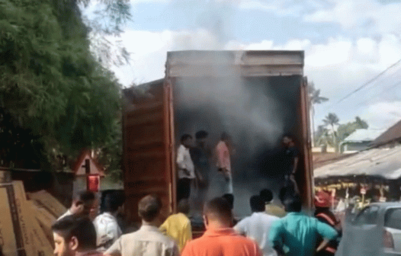 ഏകദേശം 60 ലക്ഷത്തോളം വിലവരുന്ന 250 ഓളം ടിവികളായിരുന്നു വാഹനത്തിൽ ഉണ്ടായിരുന്നത് . ഇന്ന് വൈകിട്ട് 3.45 ഓടെയാണ് സംഭവം