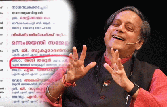 തരൂരിനെചൊല്ലി കേരളത്തിലെ കോൺഗ്രസ് നേതാക്കൾ രണ്ടുതട്ടിലായപ്പോൾ തരൂരിന്റെ പേര് ഉൾപ്പെടുത്തി മന്നം ജയന്തിയുടെ നോട്ടീസ് എൻ എസ്എ സ് പുറത്തിറക്കി.