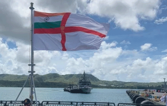 ബ്രിട്ടീഷ് പൈതൃകത്തിന്റെ ഭാഗമായ റെഡ് ക്രോസ് ഒഴിവാക്കും; ഇന്ത്യൻ നേവിക്ക് ഇനി പുതിയ പതാക