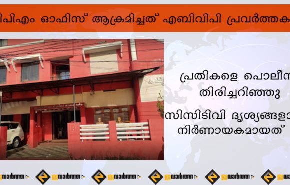 സിപിഎം തിരുവനന്തപുരം ജില്ലാ കമ്മിറ്റി ഓഫിസ് ആക്രമിച്ച പ്രതികളെ തിരിച്ചറിഞ്ഞു. എബിവിപി പ്രവർത്തകരാണ് കല്ലെറിഞ്ഞത് എന്നാണു സിസിടിവി കേന്ദ്രീകരിച്ച് നടത്തിയ