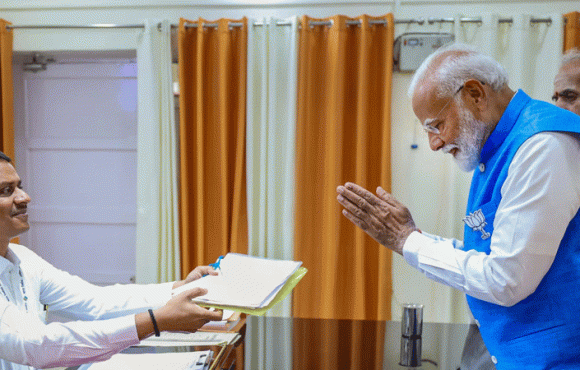 പാർട്ടിയിലെയും സഖ്യകക്ഷികളിലെയും നേതാക്കളുടെ അകമ്പടിയോടെയാണ് പ്രധാനമന്ത്രി മോദി ഉത്തർപ്രദേശിലെ വാരാണസിയിൽ നാമനിർദേശ