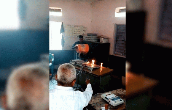 ബൂത്ത് ഉദ്യോഗസ്ഥർ കത്തിനശിച്ച ഇവിഎമ്മുകൾ മാറ്റി വോട്ടെടുപ്പ് പുനരാരംഭിച്ചതിനാൽ തിരഞ്ഞെടുപ്പ് പ്രക്രിയ താൽക്കാലികമായി