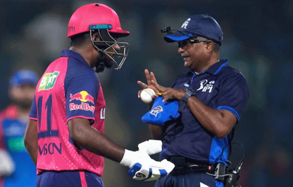 അംപയര് അനന്തപത്മനാഭനോട് കയര്ത്ത് സഞ്ജു സാംസൺ