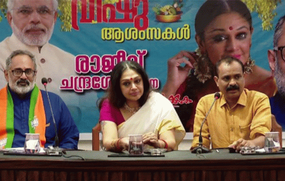 തിരുവനന്തപുരം മണ്ഡലത്തിലെ എന്ഡിഎ സ്ഥാനാര്ത്ഥി രാജീവ് ചന്ദ്രശേഖറിനൊപ്പം വാര്ത്താസമ്മേളനത്തില് സംസാരിക്കുകയായിരുന്നു നടി. എന്