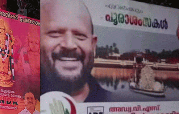 തൃപ്രയാര് തേവരുടെ ചിത്രം ഫ്ളക്സിലുള്പ്പെടുത്തി എന്നാണ് പ്രതാപന്റെ പരാതി. ഈ പ്രവൃത്തി തെരഞ്ഞെടുപ്പ് പെരുമാറ്റച്ചട്ട ലംഘനമായി കണ്ട് നടപടിയെടുക്കണ