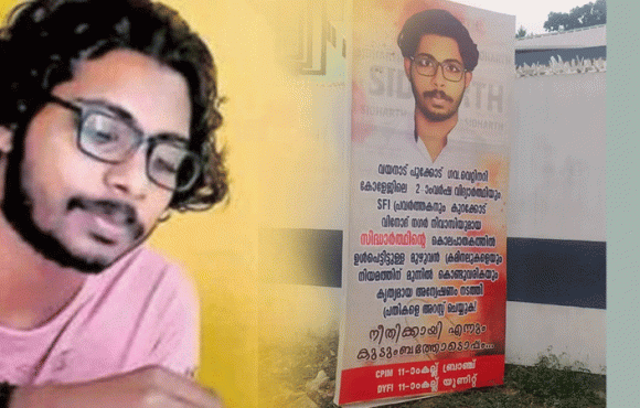 സിദ്ധാര്ത്ഥ് എസ്എഫ്ഐ പ്രവര്ത്തകൻ; സിദ്ധാര്ത്ഥിന്റെ വീടിന് മുന്നില് ഫ്ളക്സ് ബോര്ഡുമായി സിപിഎം