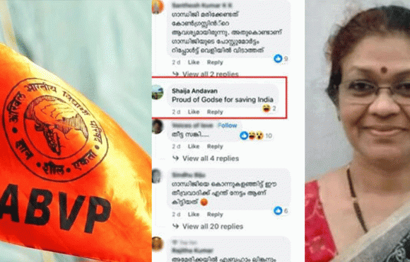 ഹിന്ദു മഹാസഭ പ്രവര്ത്തകനായ നാഥുറാം വിനായക് ഗോഡ്സെ ഭാരതത്തിലെ ഒരുപാട് പേരുടെ ഹീറോ' എന്ന കുറിപ്പോടെ ഗാന്ധിയുടെ രക്തസാക്ഷിത്വ ദിന