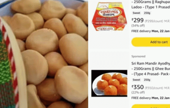 കേന്ദ്ര ഇടപെടൽ; അയോധ്യ പ്രസാദം എന്ന പേരിൽ വിൽക്കുന്ന മധുരപലഹാരങ്ങൾ ആമസോൺ നീക്കം ചെയ്തു