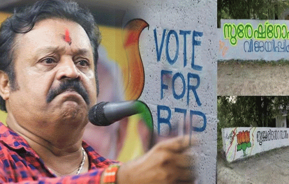 തൃശൂരിന്റെ സ്വന്തം സുരേഷ് ഗോപിയെ വിജയിപ്പിക്കണം; പ്രധാനമന്ത്രി നാളെ എത്താനിരിക്കെ സുരേഷ് ഗോപിക്കായി ചുവരെഴുത്ത്