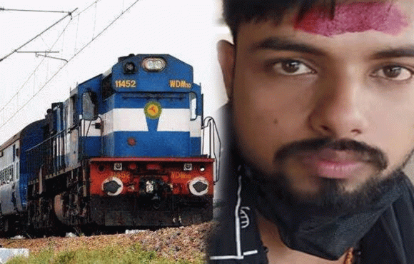 ട്രെയിൻ ഒന്നാം പ്ലാറ്റഫോമിൽ എത്തിയപ്പോൾ കയ്യിലുണ്ടായിരുന്ന വടിയിൽ കാവിക്കൊടി കെട്ടി ട്രാക്കിൽ ഇറങ്ങി നിൽക്കുകയായിരുന്നു ഇയാൾ.