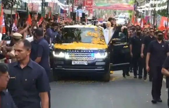 കൊച്ചിയിലെ റോഡ് ഷോയോട് അനുബന്ധിച്ച് പ്രധാനമന്ത്രി നരേന്ദ്ര മോദിക്കെതിരെ പരാതി. ഗതാഗത നിയമം തെറ്റിച്ച് തുറന്ന ഡോറില് തൂങ്ങി യാത്ര