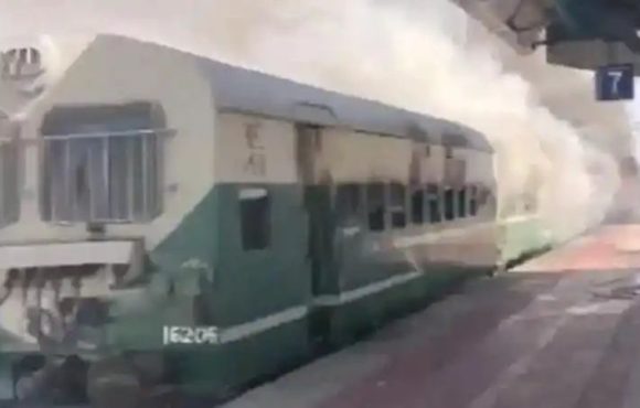 ഗുജറാത്തിലെ ബോട്ടാഡ് റെയില്വേ സ്റ്റേഷനില് ഡീസല്-ഇലക്ട്രിക് മള്ട്ടിപ്പിള് യൂണിറ്റ് (ഡിഇഎംയു) ട്രെയിനിനാണ് തീപിടിച്ചത്. വൈകുന്നേരം ആറിന് ധ്രംഗധ്രയിലേക്ക് പുറപ്പെടുന്ന ട്രെയിന്