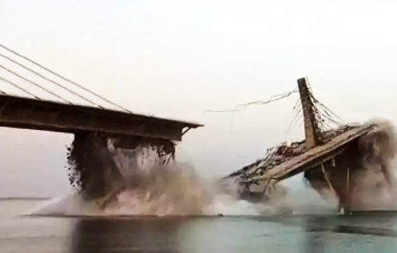 ബിഹാറിൽ ഗംഗാ നദിക്ക് കുറുകെ നിർമ്മാണത്തിലിരിക്കുന്ന അഗുവാനി-സുൽത്താൻഗഞ്ച് പാലത്തിൻ്റെ ഒരു ഭാഗം ഇന്ന് തകർന്നു. മൂന്നാം തവണയാണ് ഇതേ പാലം