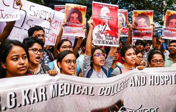 പശ്ചിമ ബംഗാളിലെ കൊൽക്കത്തയിലെ ആർജി കാർ ഹോസ്പിറ്റലിൽ ട്രെയിനി ഡോക്ടറെ ക്രൂരമായി ബലാത്സംഗം ചെയ്ത് കൊലപ്പെടുത്തിയതിൽ പ്രതിഷേധിച്ച് ഇന്ത്യയിലെ വിവിധ