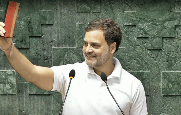 പിന്നാലെ പ്രതിപക്ഷം നിറഞ്ഞ കയ്യടികളോടെയും മുദ്രാവാക്യങ്ങളോടെയും രാഹുലിനെ സ്വീകരിച്ചു. ഇംഗ്ലീഷിലാണ് രാഹുൽ സത്യവാചകം ചൊല്ലി