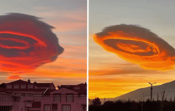 അന്താരാഷ്ട്ര മാധ്യമമായ ദ ഗാർഡിയൻ റിപ്പോർട് ചെയ്യുന്നതനുസരിച്ച് ഏതാണ്ട് വൃത്താകൃതിയിലുള്ള മേഘം, ലെന്റികുലാർ ക്ലൗഡ് എന്നാണ് അറിയപ്പെടുന്നത്