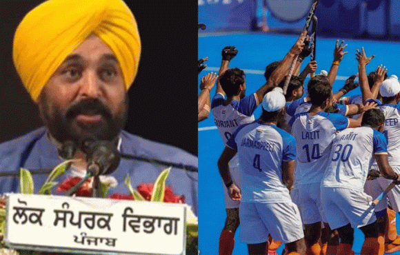 പഞ്ചാബ് മുഖ്യമന്ത്രി ഭഗവന്ത് മാൻ സംസ്ഥാനത്തെ എട്ട് ഒളിമ്പിക് ഹോക്കി താരങ്ങൾക്ക് ഒരു കോടി രൂപ വീതം സമ്മാനം നൽകി