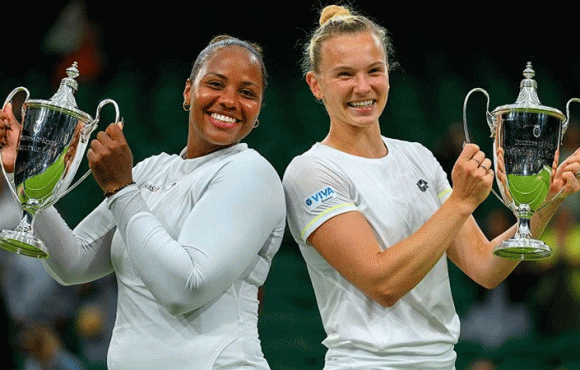 നേരത്തെ സെൻ്റർ കോർട്ടിൽ ജാസ്മിൻ പൗളിനിയെ തോൽപ്പിച്ച് സിംഗിൾസ് കിരീടം നേടിയ ബാർബോറ ക്രെജിക്കോവയ്ക്കൊപ്പം സിനിയാക്കോവ തൻ്റെ ആ