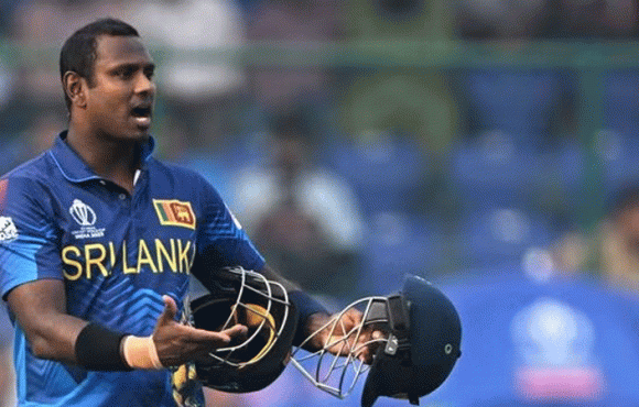 ബാറ്റ് ചെയ്യാൻ വരാനുള്ള തയ്യാറെടുപ്പുകള്ക്കിടെ തന്റെ ഹെല്മറ്റിനു തകരാറുണ്ടെന്ന് മനസിലാക്കിയ മാത്യൂസ് പുതിയ ഹെല്മറ്റ് കൊണ്ടുവരാന് ആവശ്യപ്പെട്ടു.