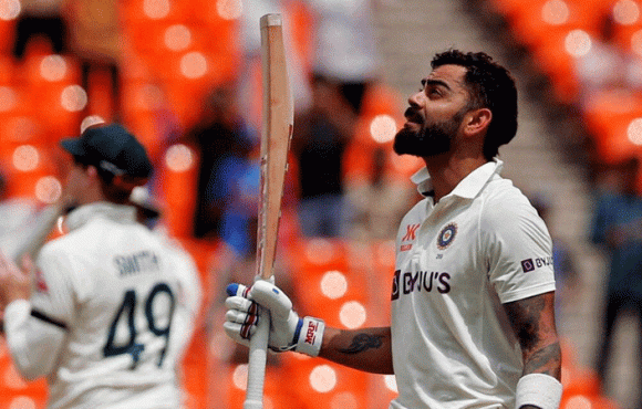 ഇന്ത്യ ശുഭ്മാൻ ഗില്ലിൽ(128), വിരാട് കോലി(186), അക്സർ പട്ടേൽ (79) എന്നിവരുടെ പിൻബലത്തിലാണ് 571 എന്ന റൺസിലേക്ക് എത്തിയത്.