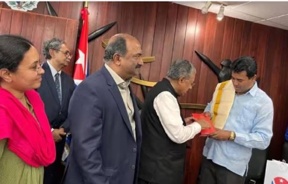 തിരുവനന്തപുരം: മുഖ്യമന്ത്രി പിണറായി വിജയനും സംഘവും ക്യൂബയിലെത്തി. ഹവാനയിലെ ജോസ് മാർട്ടി അന്താരാഷ്ട്ര വിമാനത്താവളത്തിൽ മുഖ്യമന്ത്രിക്കും സംഘത്തിനും സ്വീകരണം നൽകി. ഹവാന ഡെപ്യൂട്ടി