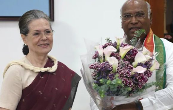 കോൺഗ്രസ് അധ്യക്ഷനായി പ്രഖ്യാപിച്ചതിന് തൊട്ടു പിന്നാലെ സോണിയ ഗാന്ധി ഖാർഗെയെ അദ്ദേഹത്തിന്റെ വീട്ടിലെത്തി ആശംസ അറിയിച്ചു