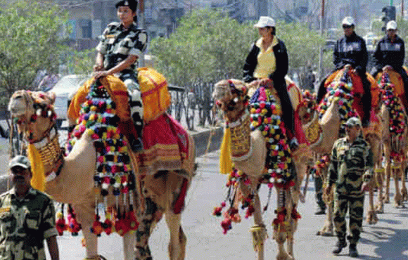 രാജസ്ഥാനിലെ താർ മരുഭൂമിയിൽ ഇന്ത്യ-പാക് അന്താരാഷ്ട്ര അതിർത്തിയിൽ പട്രോളിംഗ് നടത്താൻ ബിഎസ്എഫ് ഉദ്യോഗസ്ഥർ ഒട്ടകങ്ങളെ ഉപയോഗിക്കുന്നുണ്ട്.
