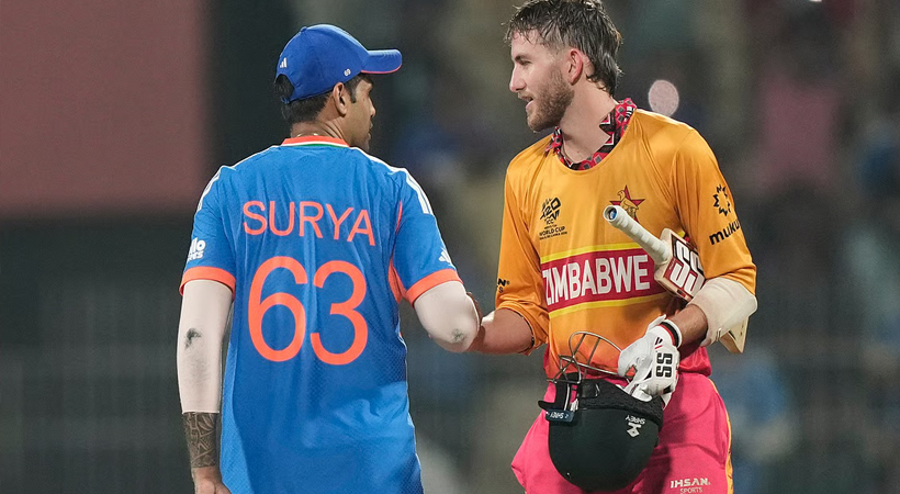 ടി 20 ലോകകപ്പ് സൂപ്പര് എട്ടിലെ രണ്ടാം പോരാട്ടത്തിൽ സിംബാബ്വെയ്ക്കെതിരെ തകർപ്പൻ ജയവുമായി ഇന്ത്യ. 72 റൺസിന്റെ വൻ വിജയമാണ് ആതിഥേയർ സ്വന്തമാക്കിയത്. വിജയത്തോടെ ഇന്ത്യ സെമിപ്രതീക്ഷകൾ സജീവമാക്കി. തുടർച്ചയായ രണ്ടാം തോൽവിയോടെ സിംബാബ്വെ ലോകകപ്പിൽ നിന്ന് പുറത്തായി. ടോസ് നഷ്ടമായി ബാറ്റിങ്ങിനിറങ്ങിയ ഇന്ത്യ 20 ഓവറിൽ നാല് വിക്കറ്റ് നഷ്ടത്തിൽ 256 റൺസ് നേടിയപ്പോൾ സിംബാബ്വെയുടെ മറുപടി ആറ് വിക്കറ്റ് നഷ്ടത്തിൽ 174 റൺസിൽ അവസാനിച്ചു.