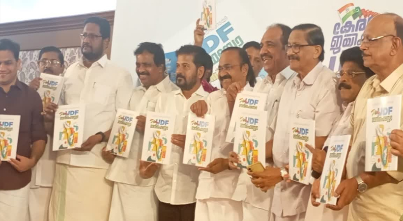 യുഡിഎഫ് പ്രകടനപത്രിക പുറത്തിറക്കി. രാവിലെ പത്ത് മണിക്ക് കൊച്ചിയില് നടന്ന ചടങ്ങില് രേവന്ത റെഡ്ഡിയാണ് പ്രകടനപത്രിക പുറത്തിറക്കിയത്. ശബരിമലയിലെ ആചാരസംരക്ഷണത്തിന് പ്രത്യേക നിയമം കൊണ്ടുവരുമെന്ന് യുഡിഎഫ് പ്രകടന പത്രികയിൽ വാഗ്ദാനം ചെയ്യുന്നു.