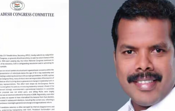 പിണറായി സർക്കാർ വരുന്നതിനായി വോട്ട് ചെയ്യണമെന്ന് ഫേസ്ബുക്ക് പോസ്റ്റ്; കെപിസിസി സെക്രട്ടറി സ്ഥാനം രാജിവെച്ച് ഡി വി വിനോദ് കൃഷ്ണ