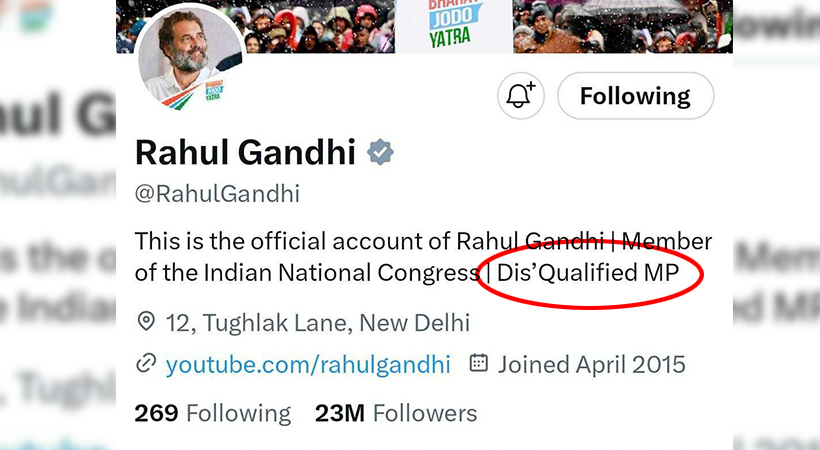 ‘അയോഗ്യനാക്കപ്പെട്ട എംപി’; അയോഗ്യനാക്കിയതിനു പിന്നാലെ ട്വിറ്ററിൽ സ്റ്റാറ്റസ് മാറ്റി രാഹുൽ