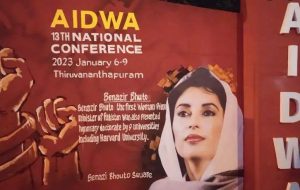 തിരുവനന്തപുരം: ജനാധിപത്യ മഹിളാ അസോസിയേഷന് അഖിലേന്ത്യാ സമ്മേളനത്തിന്റെ പോസ്റ്ററില് പാകിസ്ഥാന് മുന് പ്രധാനമന്ത്രി ബേനസീര് ഭൂട്ടോയുടെ ചിത്രം ഉള്പ്പെടുത്തിയതില് രൂക്ഷ