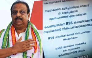 ആർ എസ് എസ് അനുകൂല പ്രസ്താവനകളുടെ പേരിൽ കോൺഗ്രസിൽ കെ സുധാകരനെതിരെ അമേഷം പുകയുന്നു